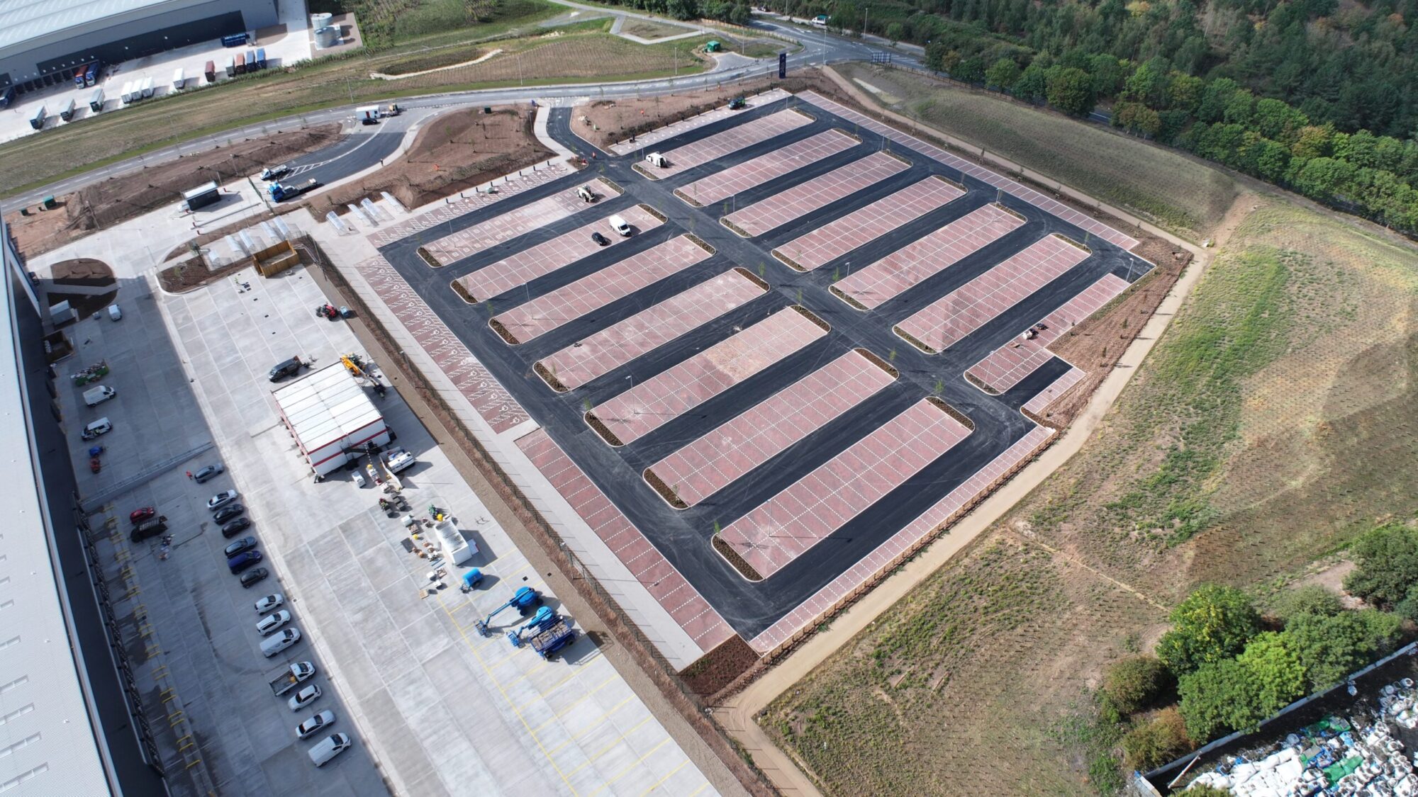 This cross-dock warehouse spans 783,000 sq ft and is designed to achieve BREEAM Outstanding. The facility incorporates a range of sustainable and energy-efficient features, including rooflights covering 15% of the roof area, rainwater harvesting systems, EV charging points for 20% of parking spaces, and roof-mounted photovoltaic panels. The warehouse has achieved an EPC A rating, while the office accommodation has achieved EPC A+.