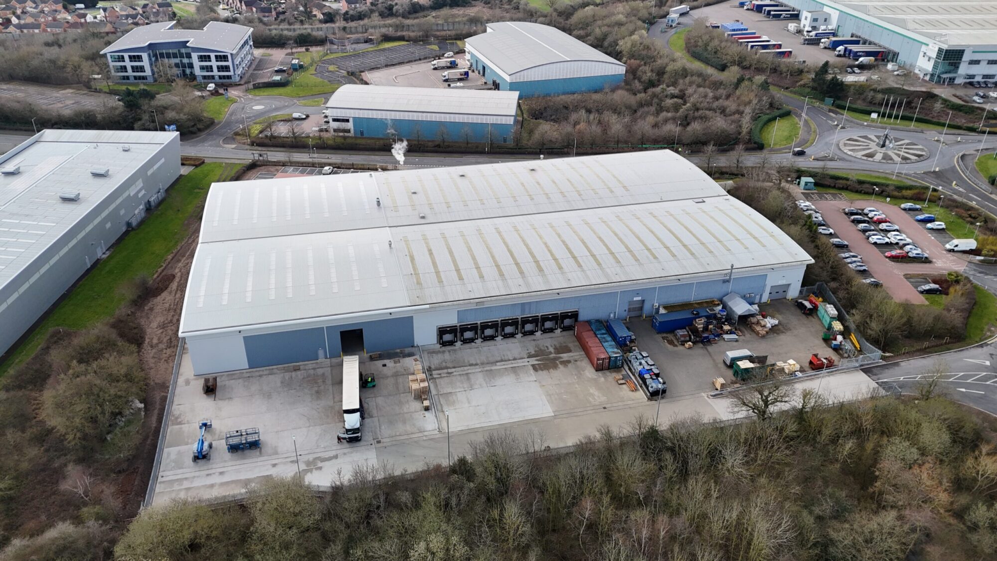 The project involved the design and construction of a single-storey extension measuring 38m x 64.9m, with a clear internal height to the underside of the haunch of 8m. A new HGV entrance was formed within the existing service yard, along with a new service yard area constructed to the rear of the extension.